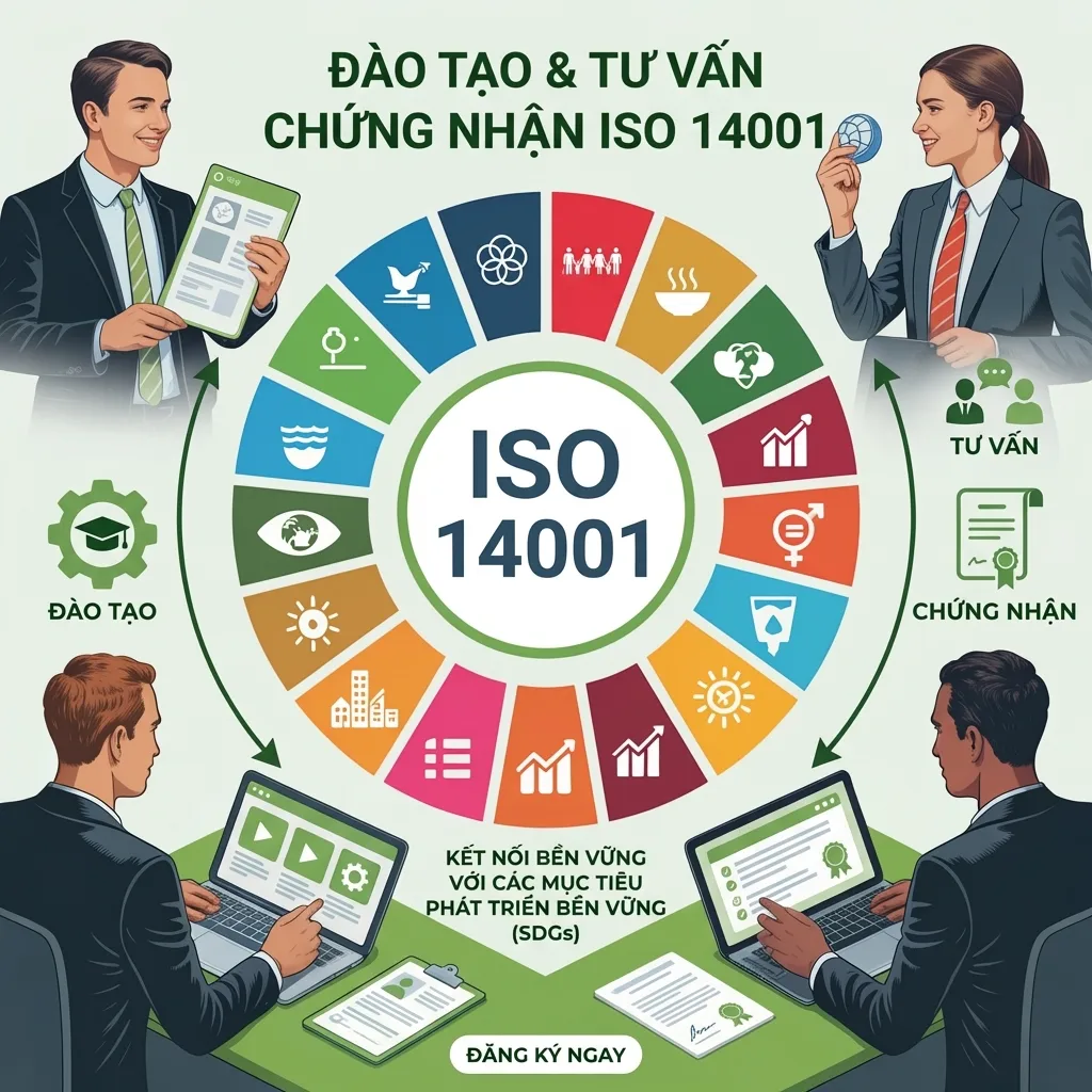 | SDG 12: Tiêu dùng và sản xuất có trách nhiệm | Đây là cốt lõi của ISO 14001, giúp tối ưu hóa vòng đời sản phẩm và giảm thiểu lãng phí tài nguyên. |
